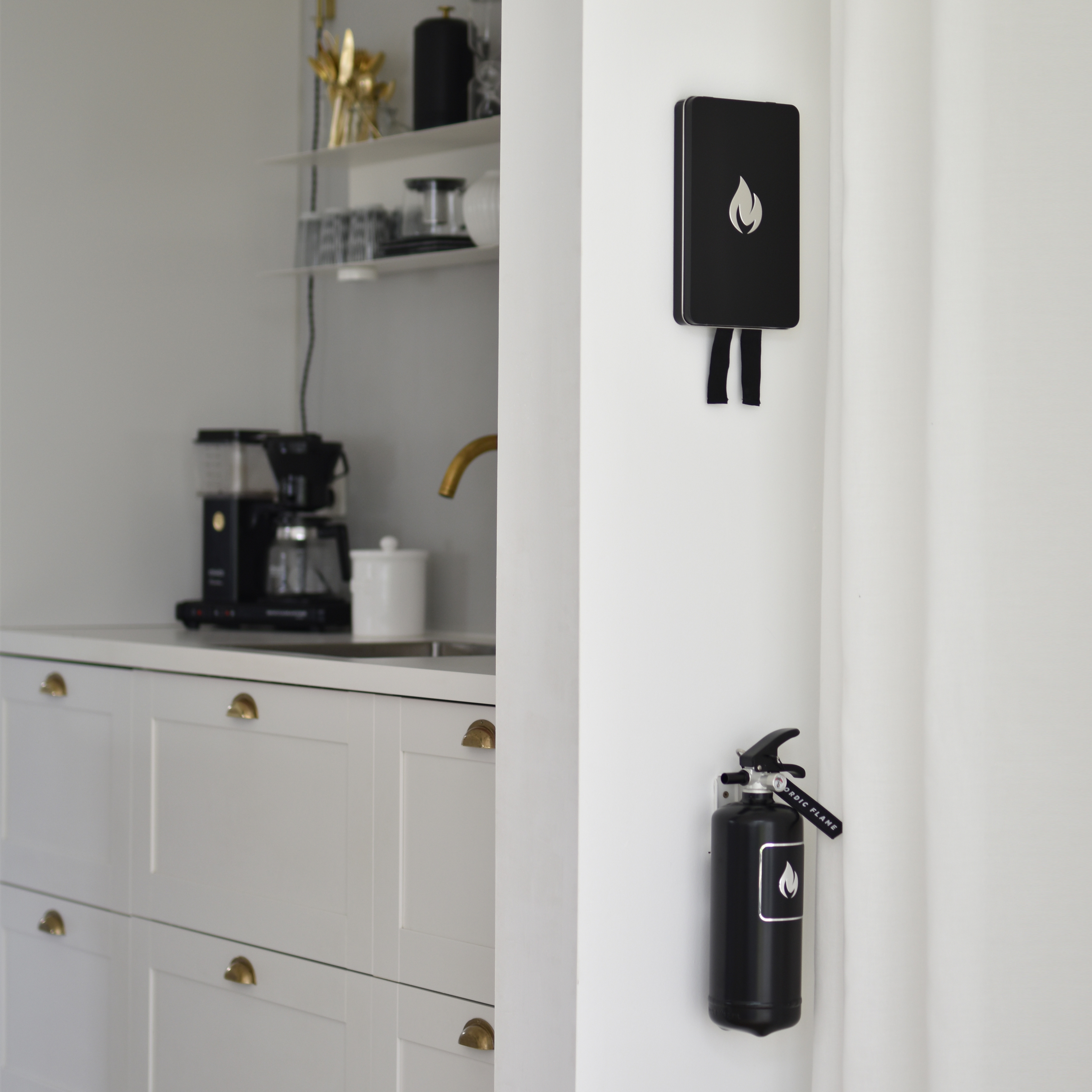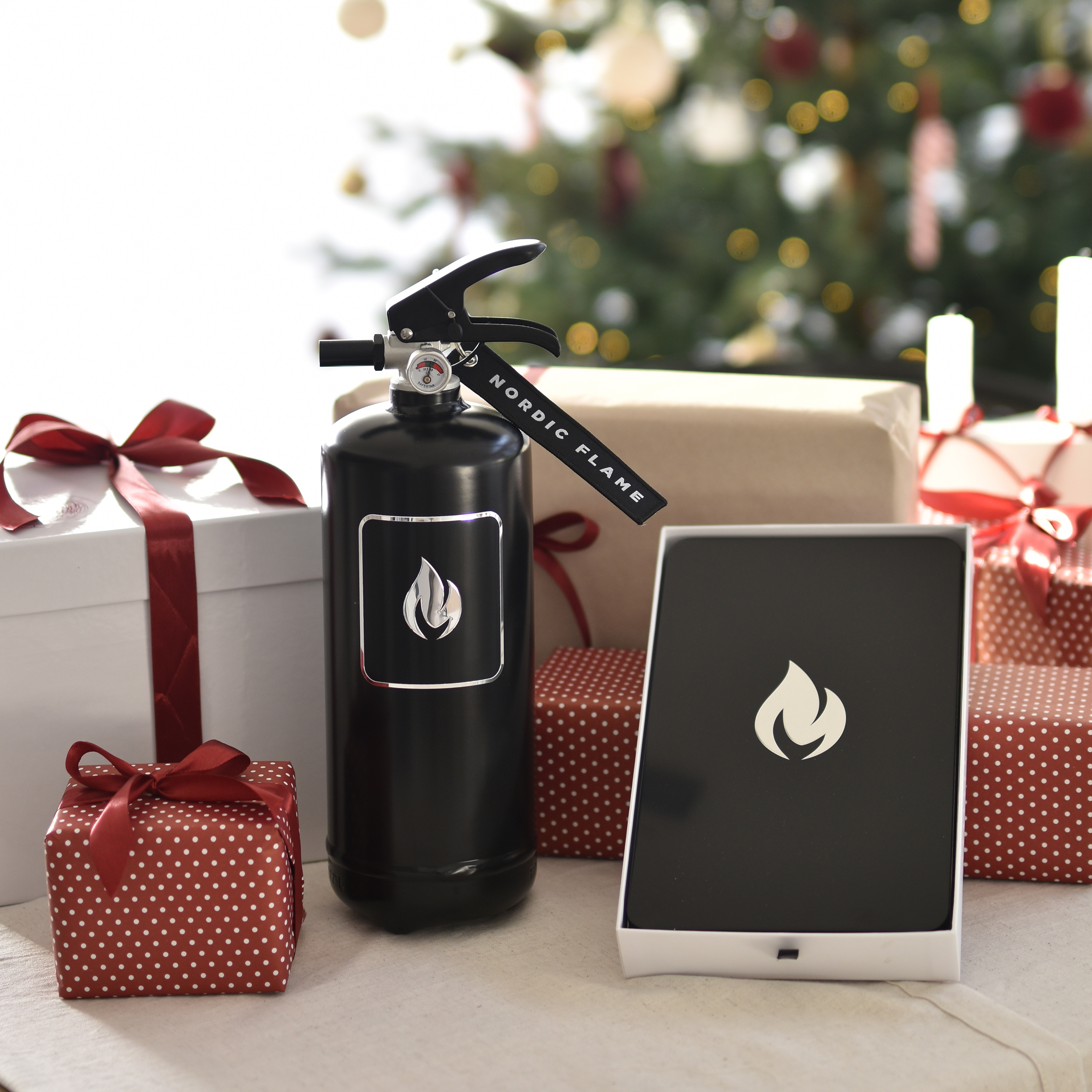 Diese hochwertige Löschdecke, präsentiert in einer stilvollen Metallbox, ergänzt die Design-Feuerlöscher von Nordic Flame perfekt und verbessert den Brandschutz in jedem Haushalt.