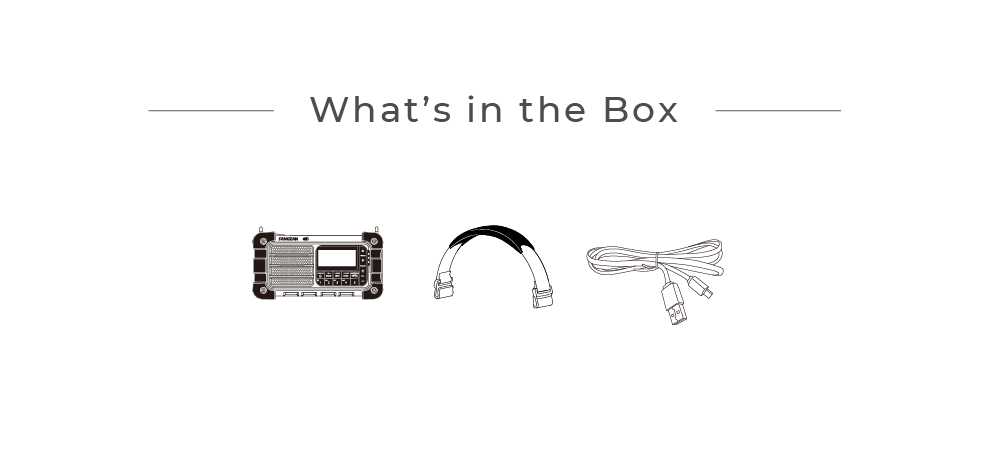 - Sonstiges: Taschenlampe, Handkurbel-Mechanismus, wiederaufladbar, Solarbetrieb, Stereo über Kopfhörer
