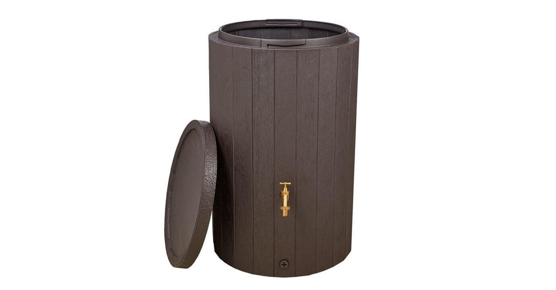 Der Regenspeicher überzeugt durch sein modernes Design in täuschend echt wirkender Holzstruktur und fügt sich harmonisch in jede Gartenumgebung ein. Hergestellt aus 100 % Recycling-Kunststoff, vereint er Nachhaltigkeit mit Langlebigkeit.