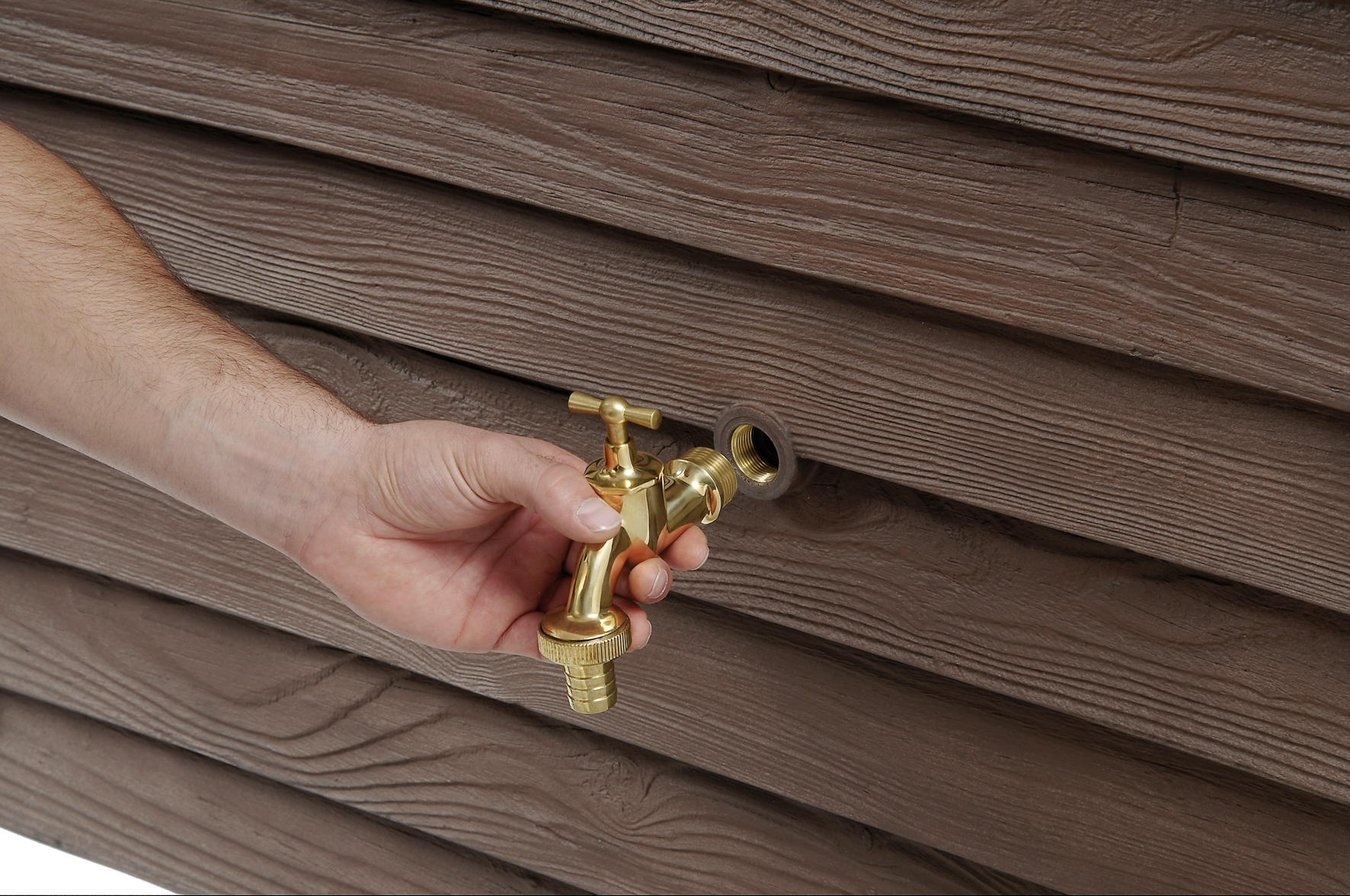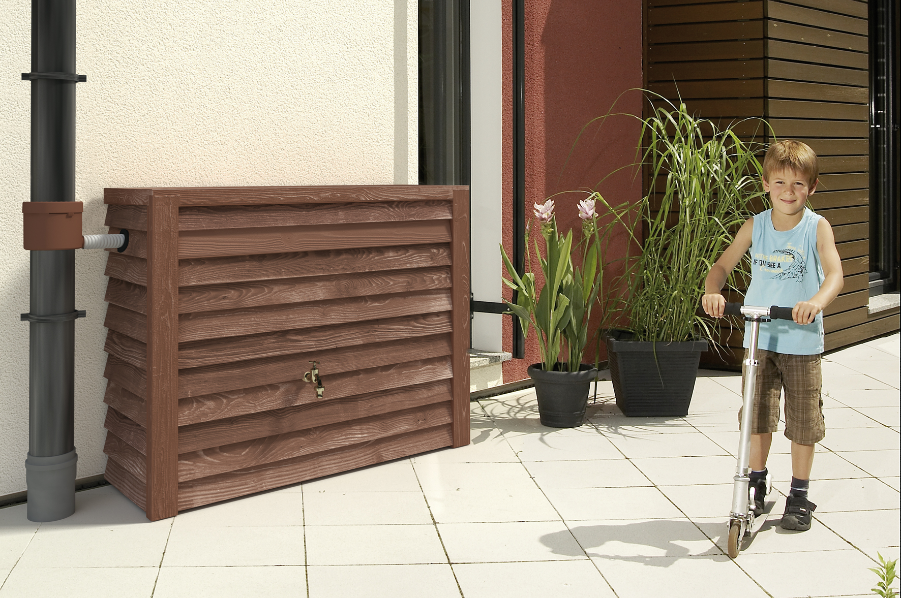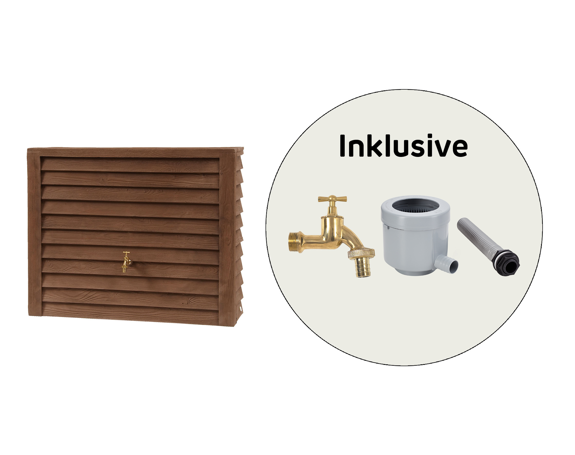Der Woody Wandtank ist ein besonders robuster Deko-Regenspeicher in täuschend echt wirkender Holzoptik und eignet sich perfekt zur platzsparenden Aufstellung an der Hauswand. Dank des speziellen Fertigungsverfahrens ist jeder Tank ein echtes Unikat mit einzigartiger Oberfläche.