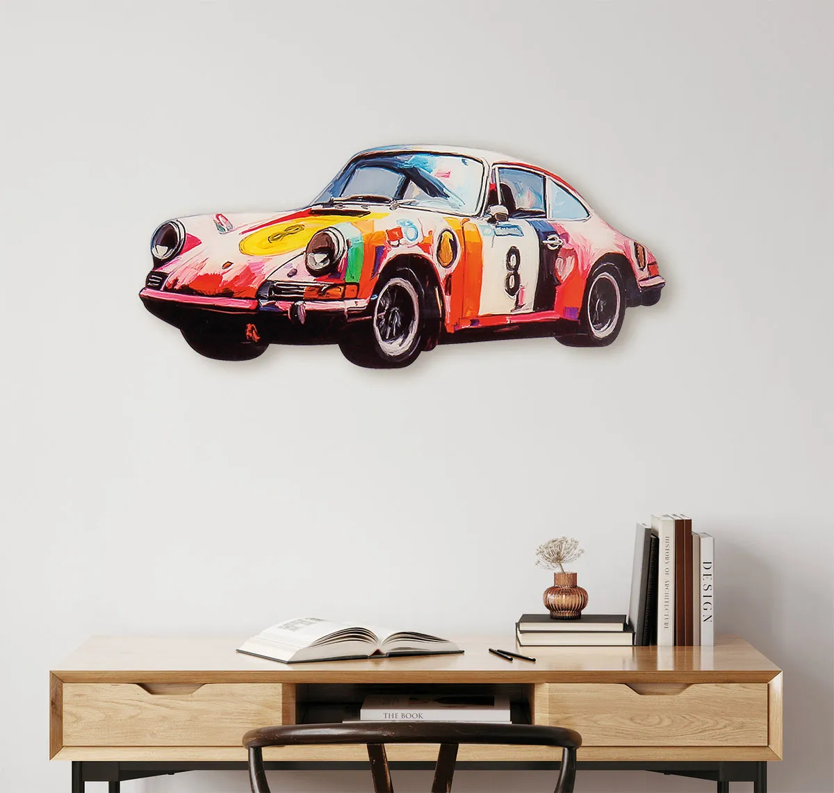 Ein ausdrucksstarkes Kunstwerk, das den ikonischen Porsche 911 in einer zeitgenössischen, reduzierten Formensprache zeigt. Die kraftvolle Darstellung vereint Dynamik und Design – ein klares Statement für automobile Ästhetik.
