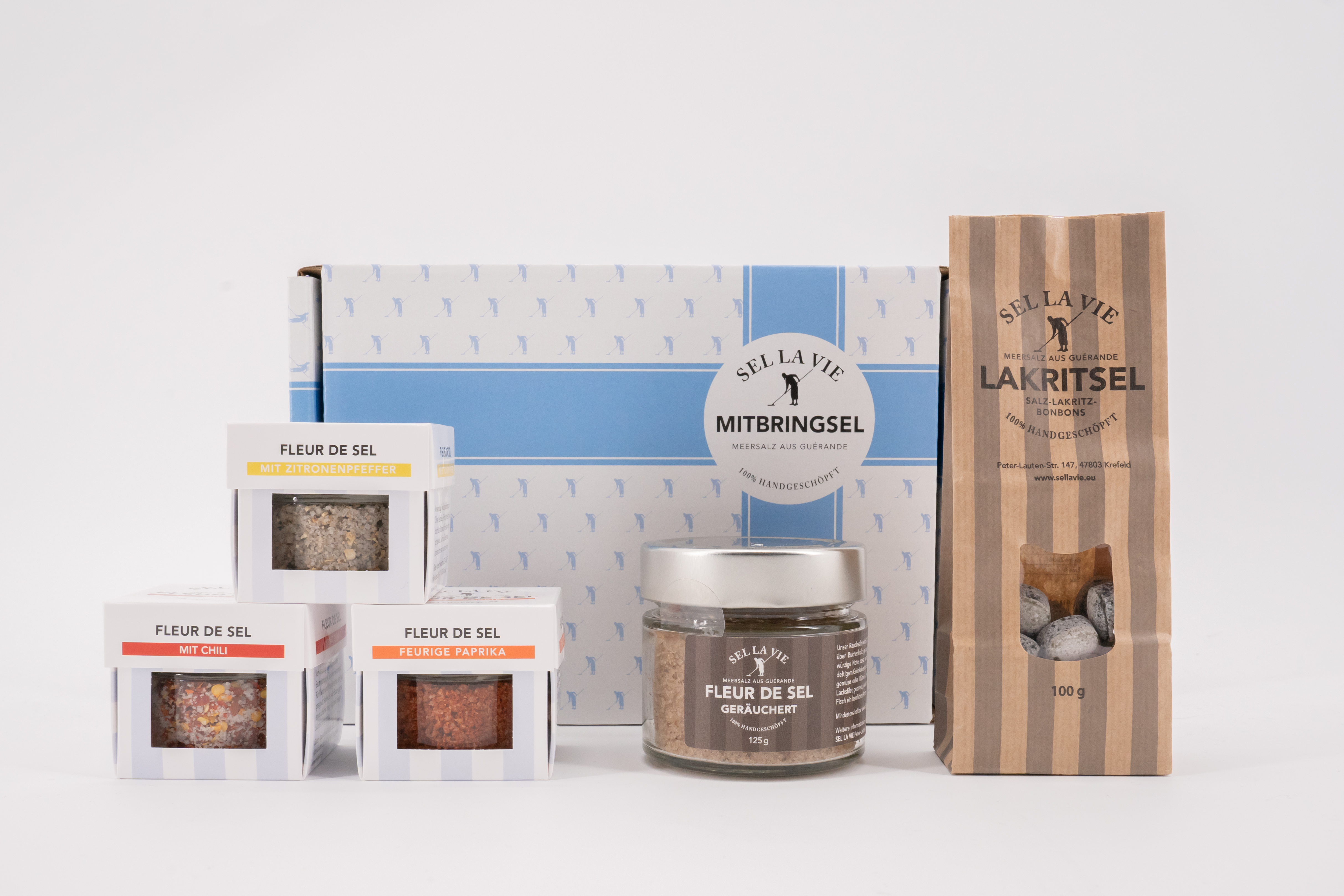 Für alle die es beim Essen feurig lieben ist die Geschenkbox „MITBRINGSEL Spicy" von Sel la vie das perfekte Set. Die würzig scharfen Kräutersalze wurden zusammen mit dem 120 Stunden geräucherten Fleur de Sel und dem Salz-Lakritz Bonbons gebündelt.