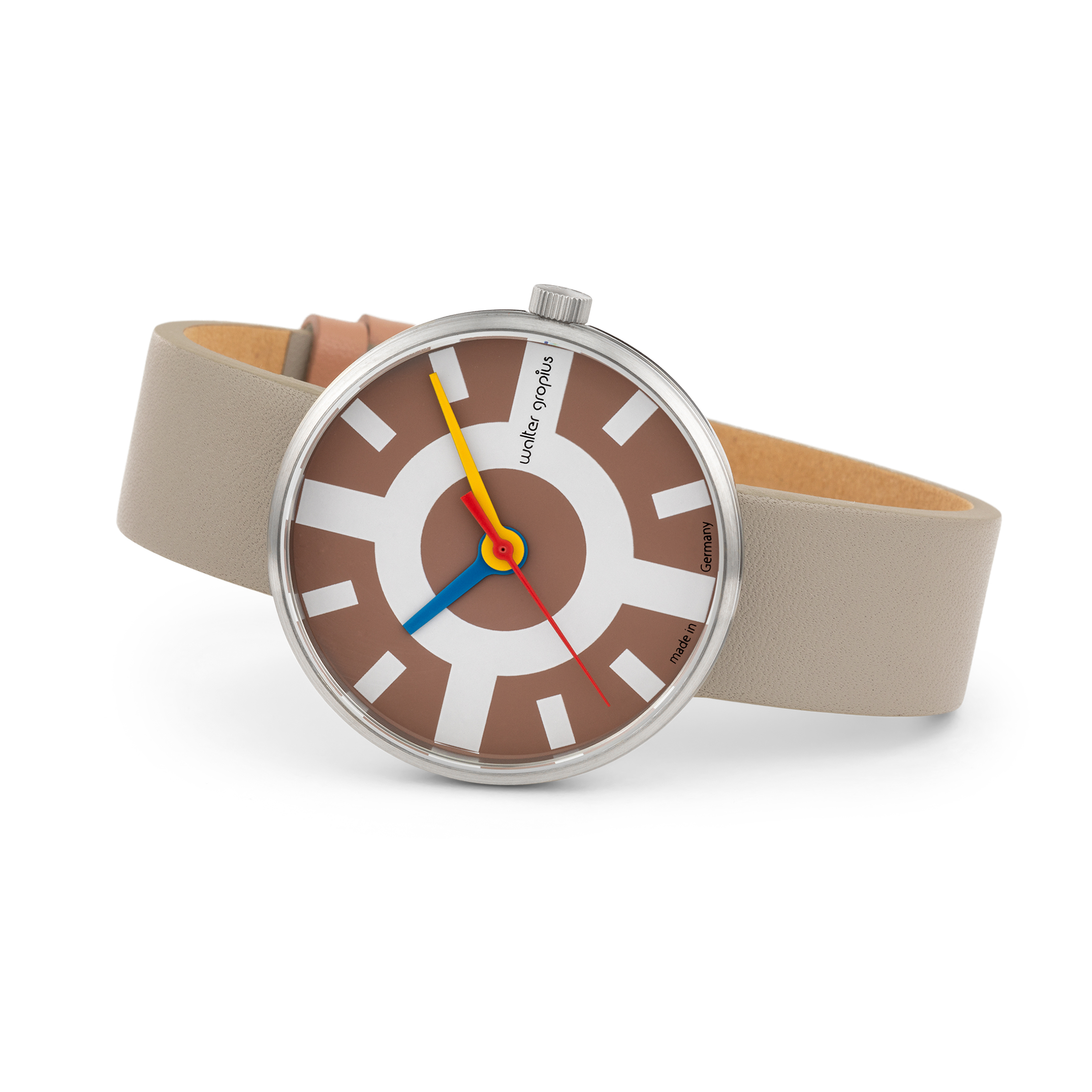 Das beige Ziffernblatt greift das Konzept einer präzisen Straßenkreuzung mit einem symbolischen Kreisverkehr auf – eine raffinierte Verbindung von Geometrie und Funktionalität. Die geradlinige Ästhetik wird durch ein hochwertiges Edelstahlgehäuse, kratzfestes Uhrenglas und ein zuverlässiges Quarzwerk ergänzt. Abgerundet wird das Design durch ein edles Lederarmband, das für hohen Tragekomfort sorgt. Die Crossway ist mehr als eine Uhr – sie ist ein Ausdruck von Bauhaus-Philosophie, ideal für Liebhaber moderner Kunst und zeitloser Gestaltung.
