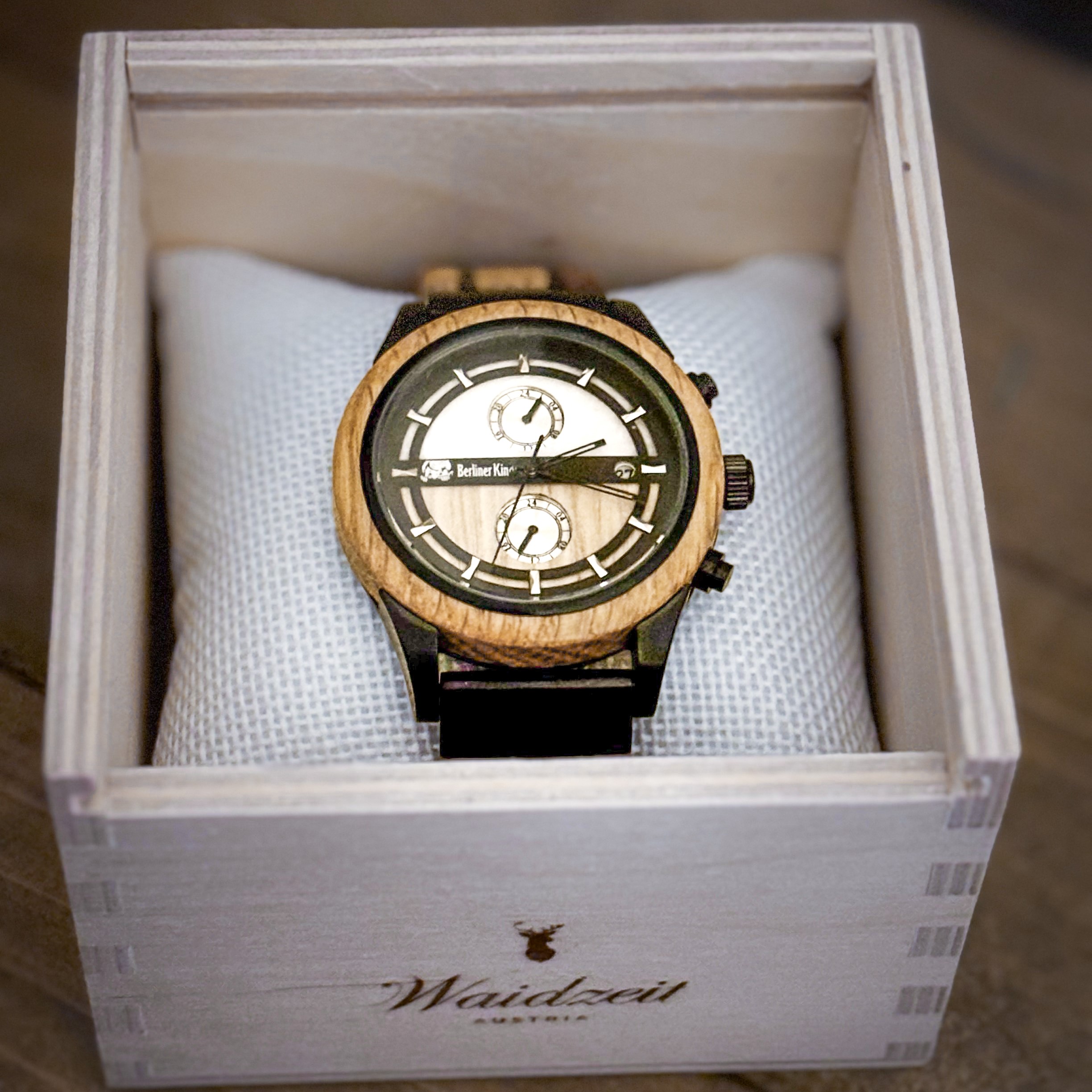 - Verpackung: Hochwertige Holzschatulle