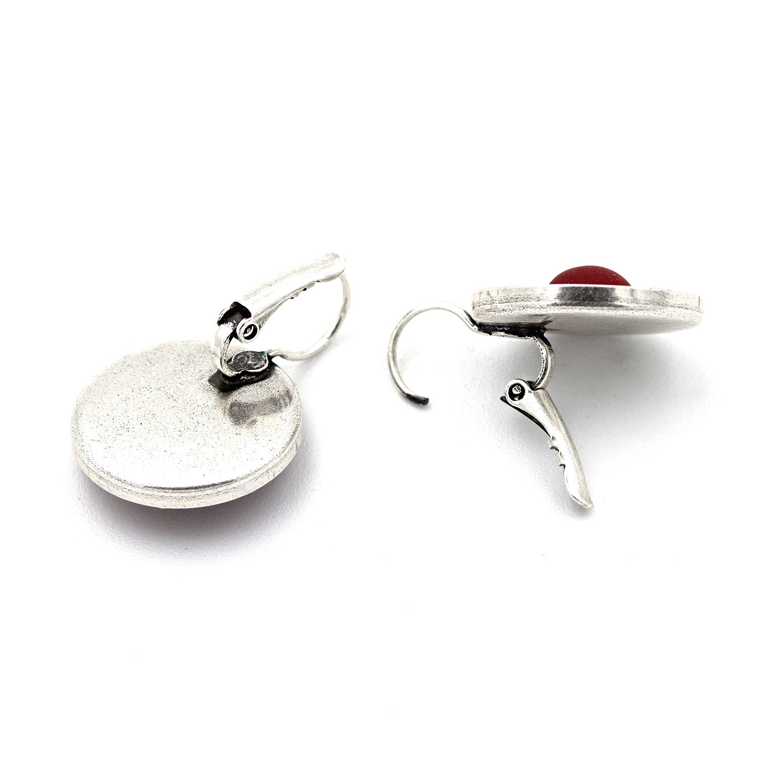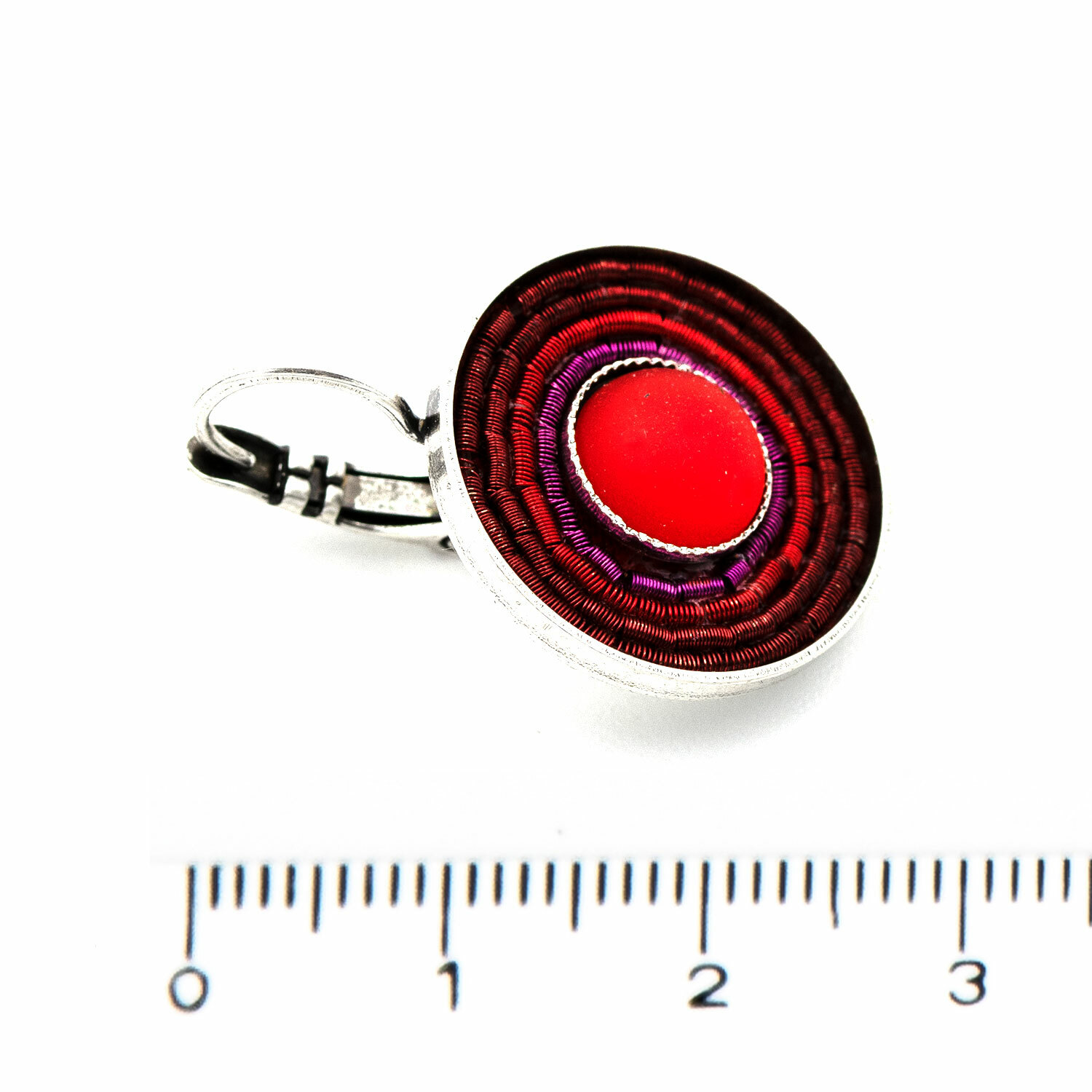 Ohrringe mit hochwertigem Brisur-Verschluß, verziert mit eloxiertem Spiraldraht und Glascabouchon in leuchtendem Rot.