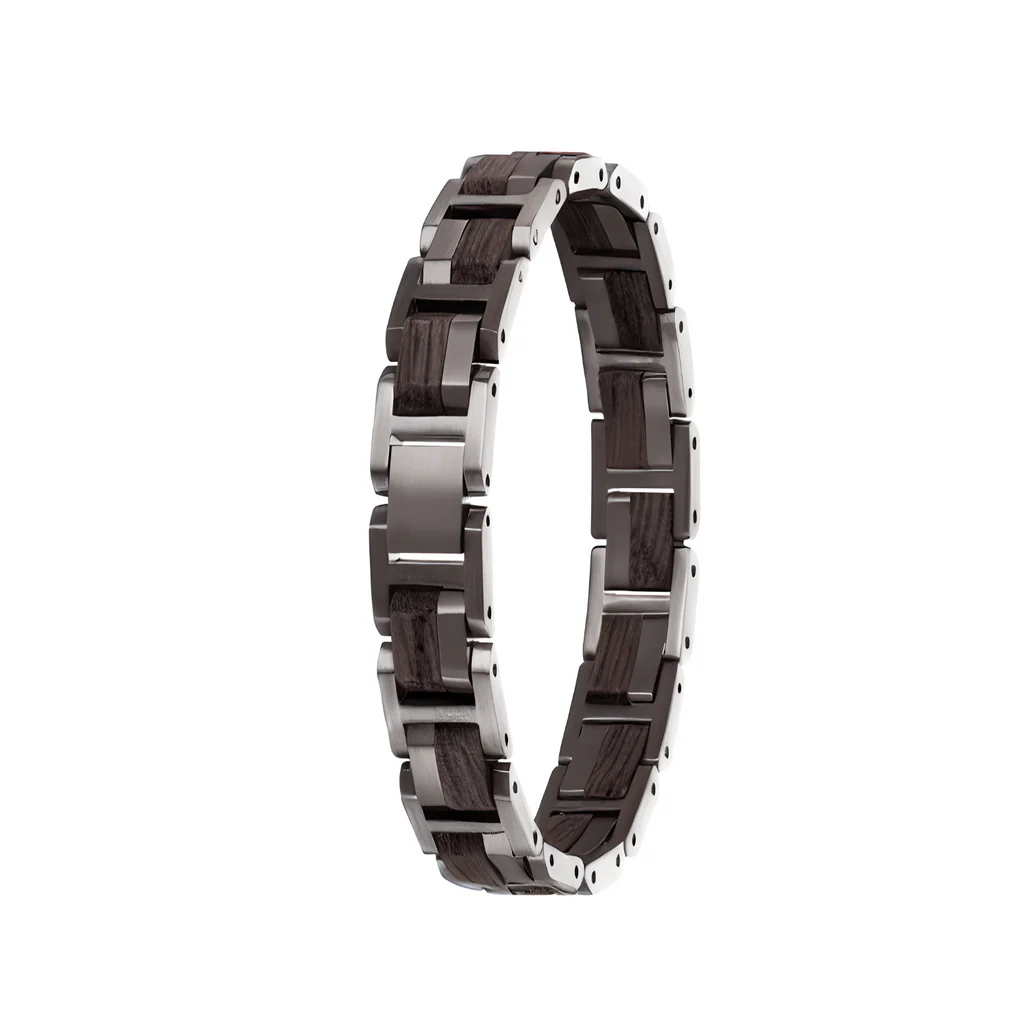 - Holzarmband mit Edelstahl verstärkt
